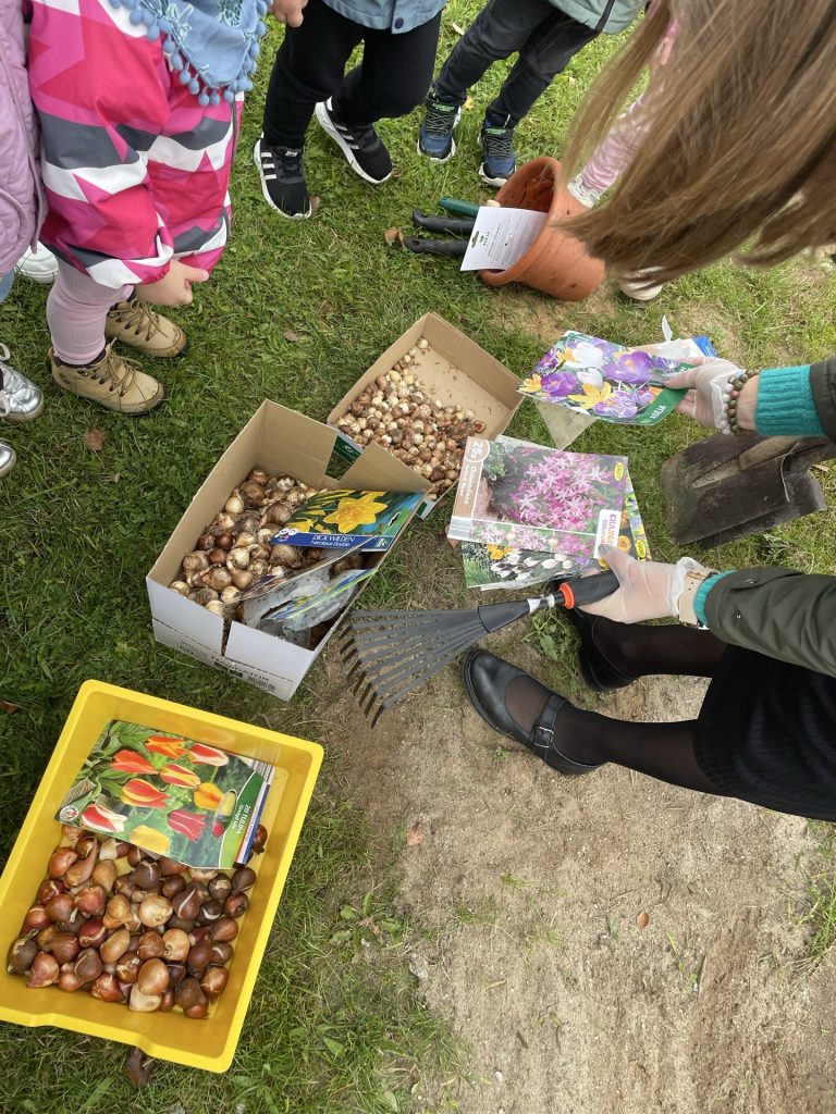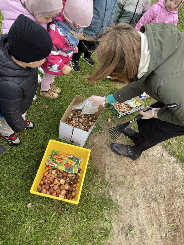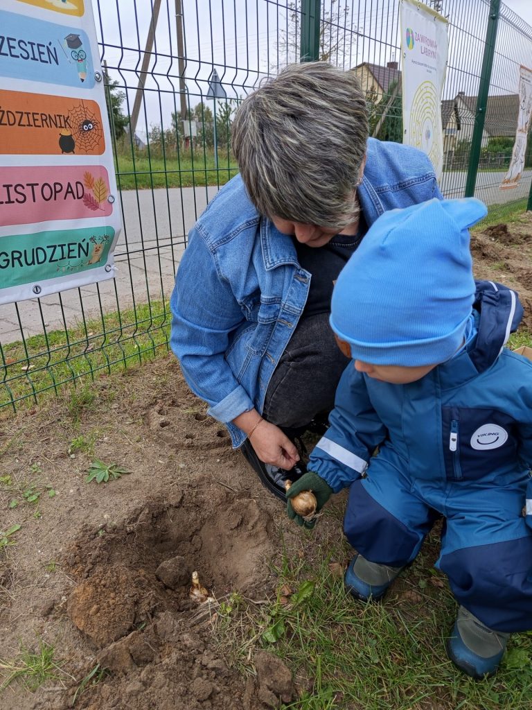 Kochani Rodzice, serdecznie dziękujemy za aktywne włączenie się w naszą jesienną akcję sadzenia cebulek kwiatowych w przedszkolnym ogrodzie. Dzięki Waszemu wsparciu, życzliwości i zaangażowaniu dzieci miały okazję nie tylko spędzić radosny czas na świeżym powietrzu, ale także nauczyć się, jak ważna jest troska o przyrodę i otaczające nas środowisko.
