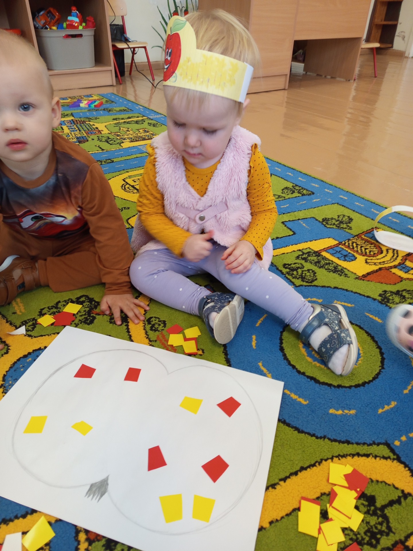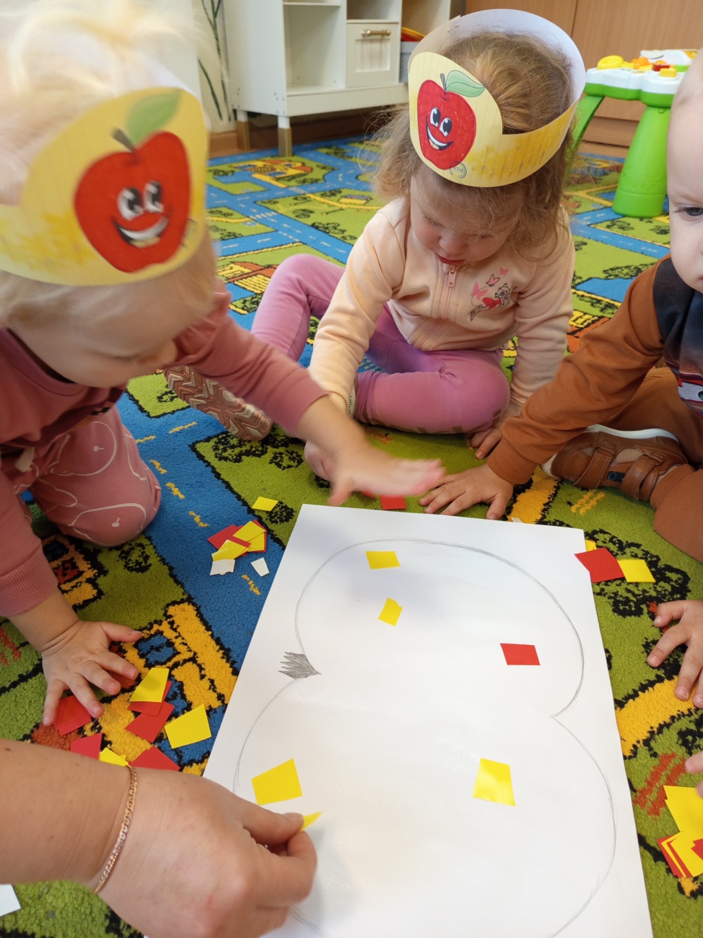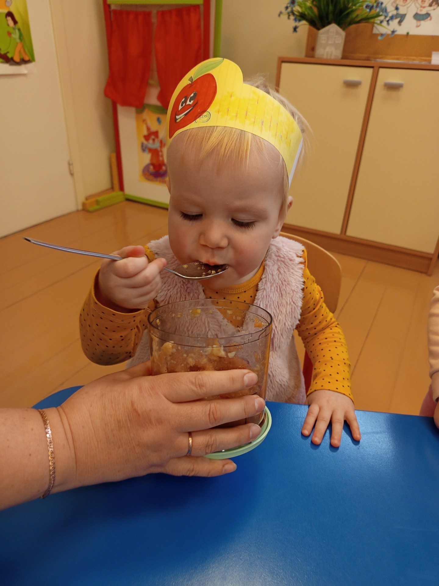 Dziś w naszej grupie obchodziliśmy Dzień Jabłka. Dzieci oglądały jabłka – czerwone, małe, duże. Wąchały je i dotykały, sprawdzając, jakie są gładkie i pachnące. Potem wspólnie zaglądaliśmy do środka jabłka – zobaczyliśmy pestki i miąższ. Dzieci próbowały kawałków jabłka, poznając, że jedno jest słodsze, a inne bardziej kwaśne. Na koniec razem z paniami przygotowaliśmy mały jabłkowy deser – miękki mus z jabłek. Wszystkim bardzo smakował!