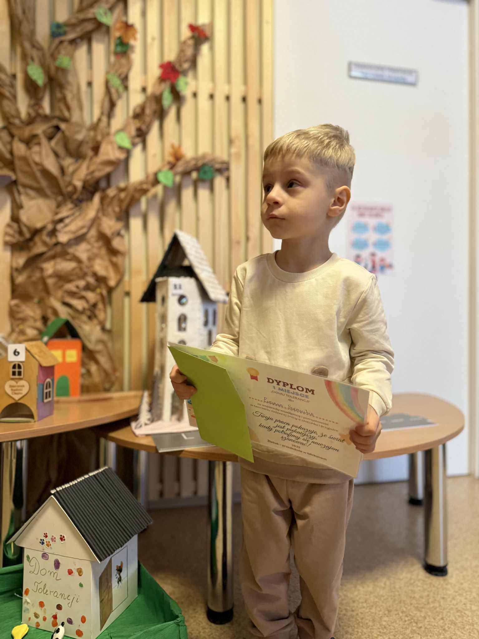 Wszystkie pozostałe dzieci otrzymały podziękowania za udział i kreatywność. Każdy dom był wyjątkowy – stworzony z sercem, pomysłowością i rodzinną współpracą. Wszystkie prace można podziwiać na naszej wystawie „Ulica Tolerancji”, która stała się pięknym symbolem tego, że tolerancja to wspólna droga, którą idziemy każdego dnia.