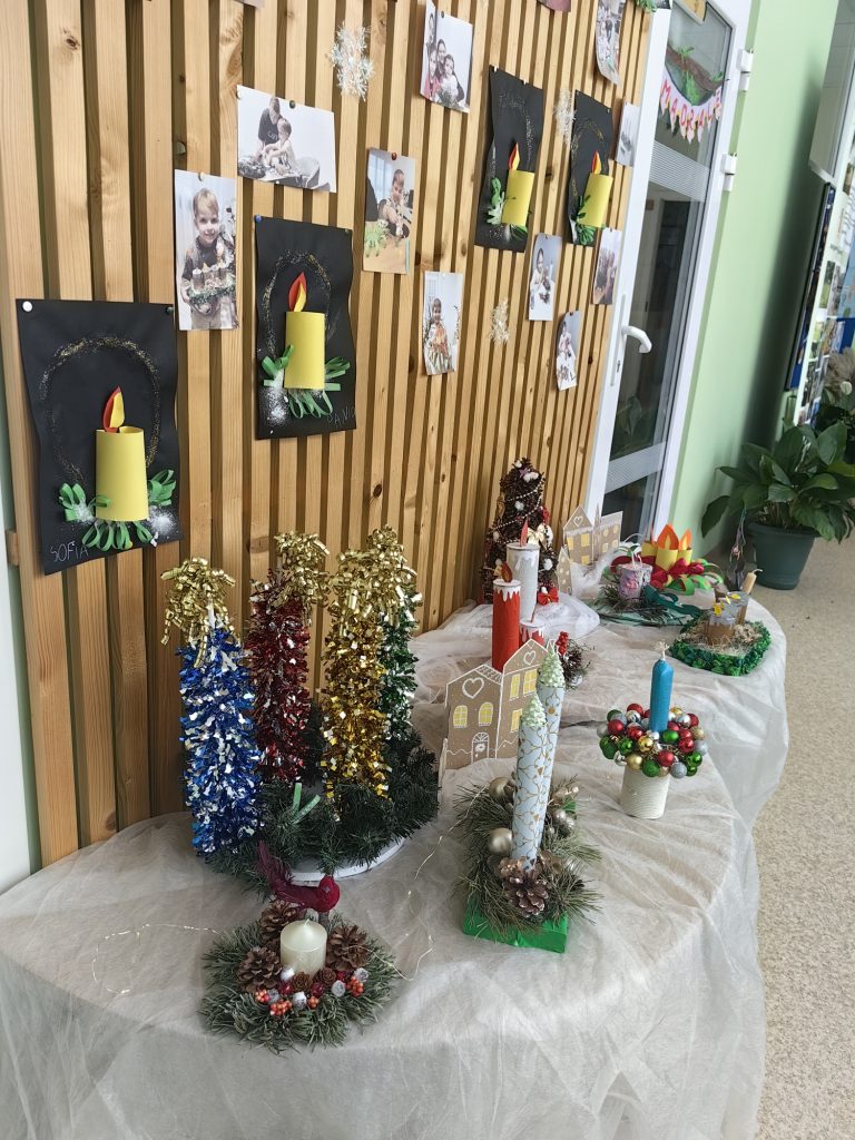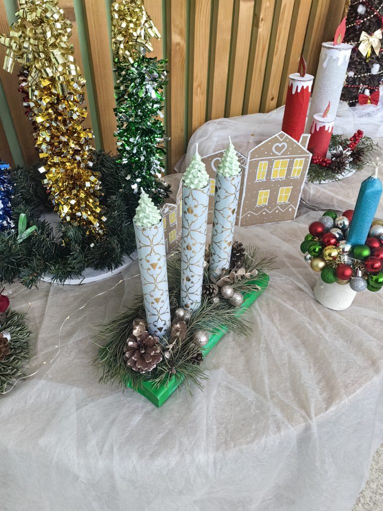 Przed magicznym czasem Świąt rodzice razem z dziećmi tworzyli adwentowe wianki, oddając się twórczej i rodzinnej atmosferze. Każda rodzina mogła przygotować swój wianek w dowolny sposób – od tradycyjnych kompozycji z pachnących gałązek świerku po bardziej nowoczesne, kolorowe dekoracje. Wspólne tworzenie przyniosło wiele radości: dzieci z zaangażowaniem wybierały ozdoby, układały gałązki i pomagały w mocowaniu świec, a rodzice wspierali ich pomysły i dodawali ostatnie akcenty. Wiele rodzin robiło zdjęcia, aby zachować na dłużej te ciepłe, rodzinne chwile – pełne uśmiechu, skupienia i swobodnej kreatywności. Powstały piękne, niepowtarzalne wianki, ale przede wszystkim utrwaliły się wspomnienia wspólnie spędzonego czasu tuż przed nadejściem magicznego, świątecznego okresu.
