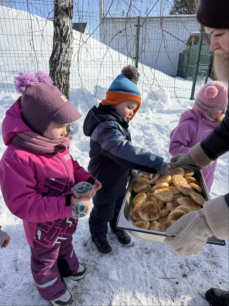Nie zabrakło też symbolicznego akcentu tradycji – razem pożegnaliśmy zimę z Marzanną i zaprosiliśmy wiosnę, krzycząc głośno “Zimo papa, wiosno chodź tu!” łącząc ruch z dobrą zabawą i z pysznymi blinkami, które to upiekły nam nasze panie z kuchni.
