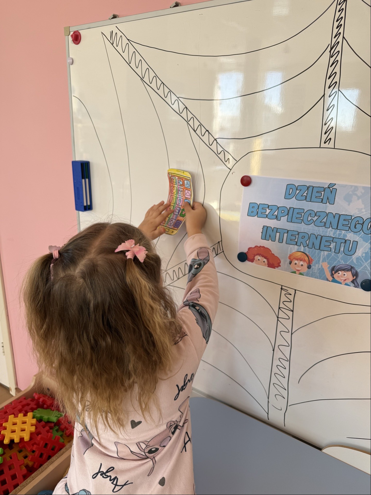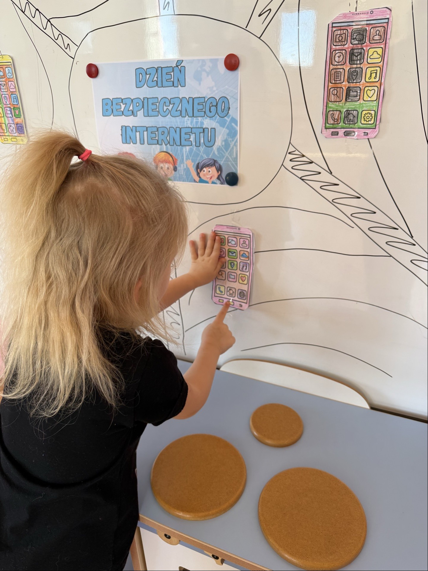 Dzisiejsze zajęcia były związane ze Światowym Dniem Bezpiecznego Korzystania z Internetu. Wspólnie obejrzeliśmy film edukacyjny dotyczący bezpiecznego korzystania z Internetu. Rozmawialiśmy o tym, że jako małe dzieci nie powinny samodzielnie korzystać z telefonów( (komputerów) rodziców oraz że jeśli chcą coś obejrzeć, zawsze należy zapytać dorosłego o zgodę;