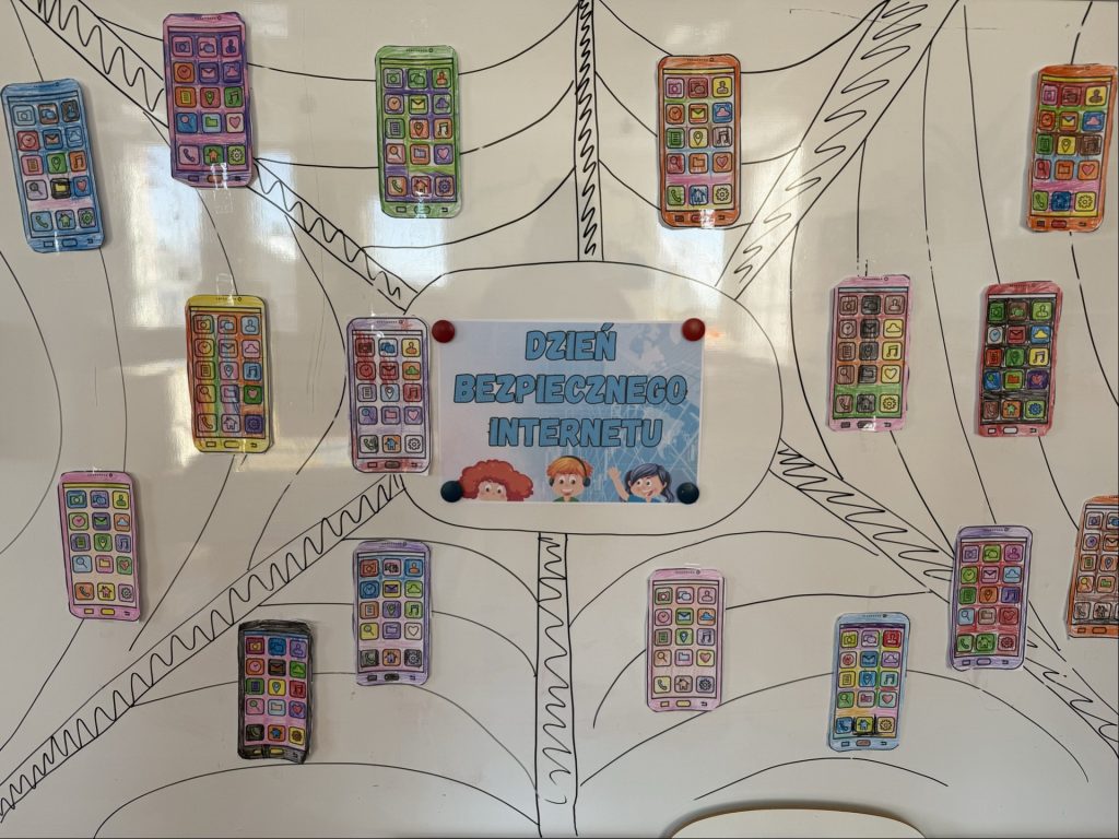 Na zakończenie wykonaliśmy pracę plastyczną „Internetowa pajęczyna”, dzięki której wyjaśniliśmy, dlaczego sieć internetowa porównywana jest do pajęczyny – wszystko jest ze sobą połączone.