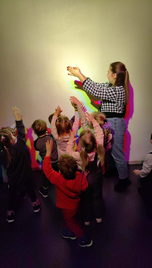 Dzieci miały możliwość samodzielnego eksperymentowania ze światłem, dźwiękiem oraz ruchem. Z dużym zainteresowaniem obserwowały efekty swoich działań, korzystały z interaktywnych stanowisk oraz poznawały różne zjawiska w praktyczny i przystępny sposób. Wycieczka pozwoliła rozwijać ciekawość poznawczą, spostrzegawczość oraz zachęciła dzieci do zadawania pytań i odkrywania nowych rzeczy.