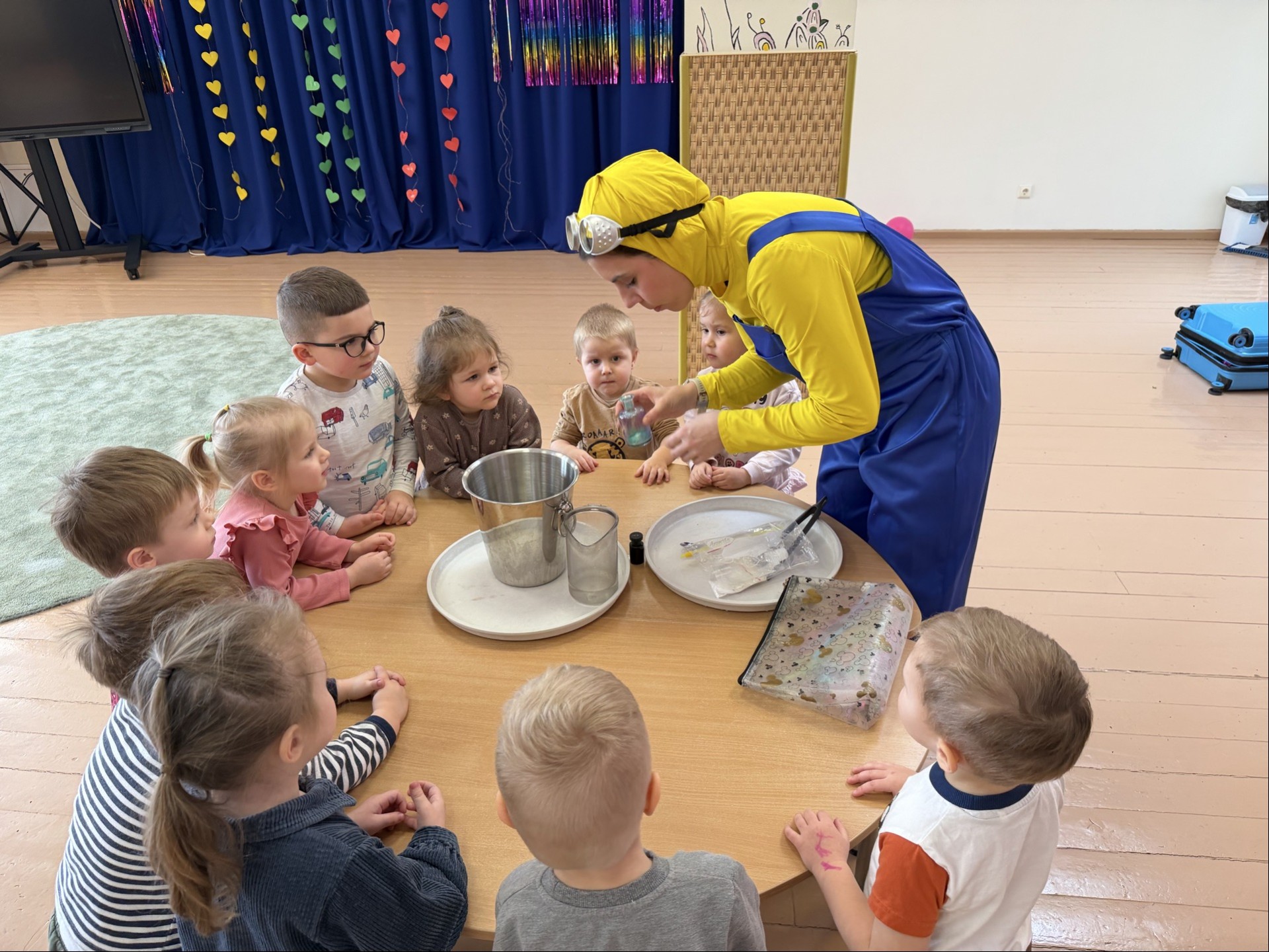 Na zakończenie tygodnia zapraszono animatora z Wesołą Edukacją, który wprowadza pokaz naukowy, zabawy ruchowe i doświadczenia w formie widowiska. To doskonała kulminacja projektu: wzmacnia motywację, daje dzieciom poczucie sukcesu i zostawia piękne wspomnienia. Taki tydzień „Eksperymentów” nie tylko bawi, ale przede wszystkim uczy – pokazując, że nauka może być bliska, prosta i naprawdę… wesoła.