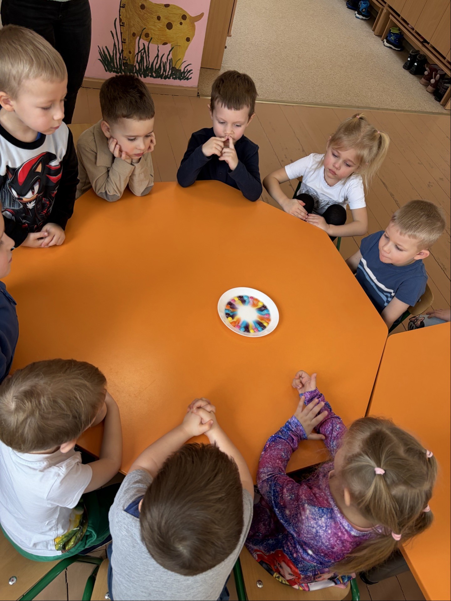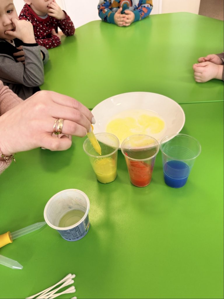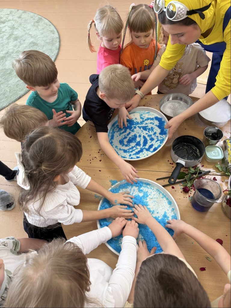 Podczas realizacji tematu edukacyjnego „Eksperymenty” panie tworzyły dzieciom prawdziwe laboratorium radości – pełne odkryć, pytań i zachwytu. Wystarczy odrobina ciekawości, proste materiały i uważne prowadzenie, aby codzienne sytuacje zamieniły się w fascynujące doświadczenia. Dzieci uczą się wtedy najskuteczniej: poprzez działanie, obserwację i samodzielne dochodzenie do wniosków.