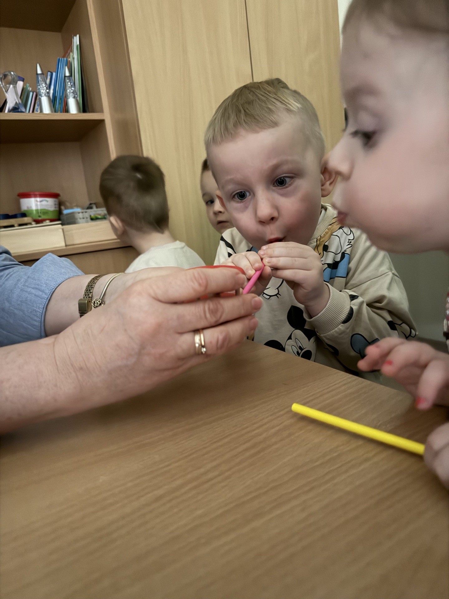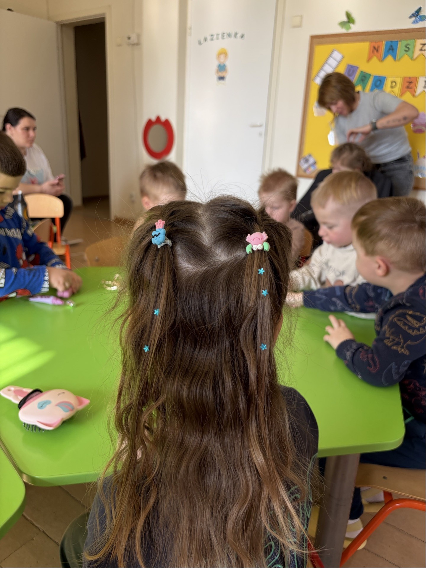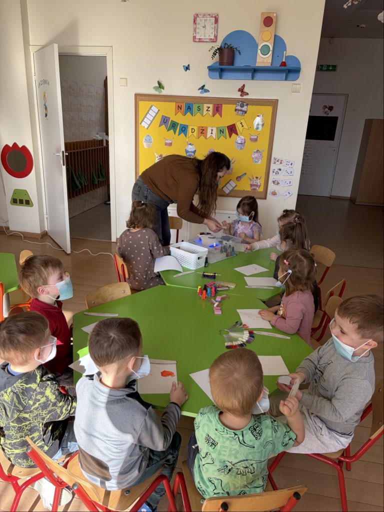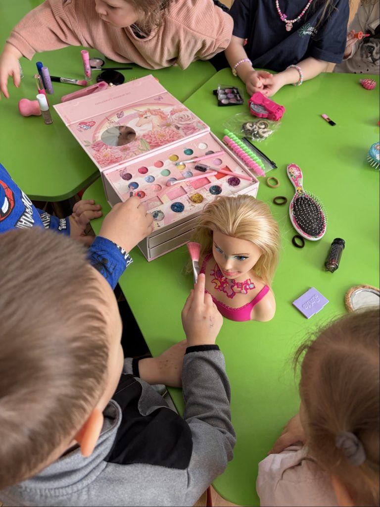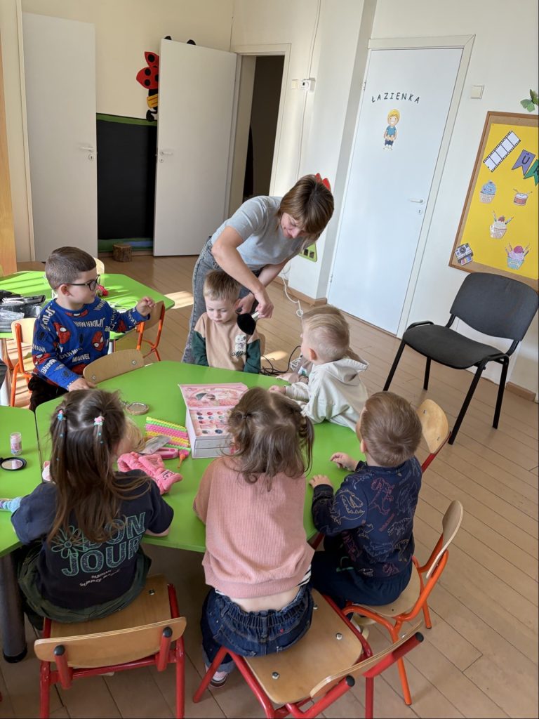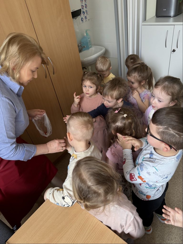 Każdy zawód okazał się wyjątkowym i bardzo potrzebnym! Wielką atrakcją były spotkania z rodzicami oraz pracownikami przedszkola, którzy z zaangażowaniem i pasją opowiadali o swoich zawodach oraz pokazywali, jak wygląda ich praca na co dzień. Dzięki temu dzieci mogły zobaczyć różne zawody „od środka”.